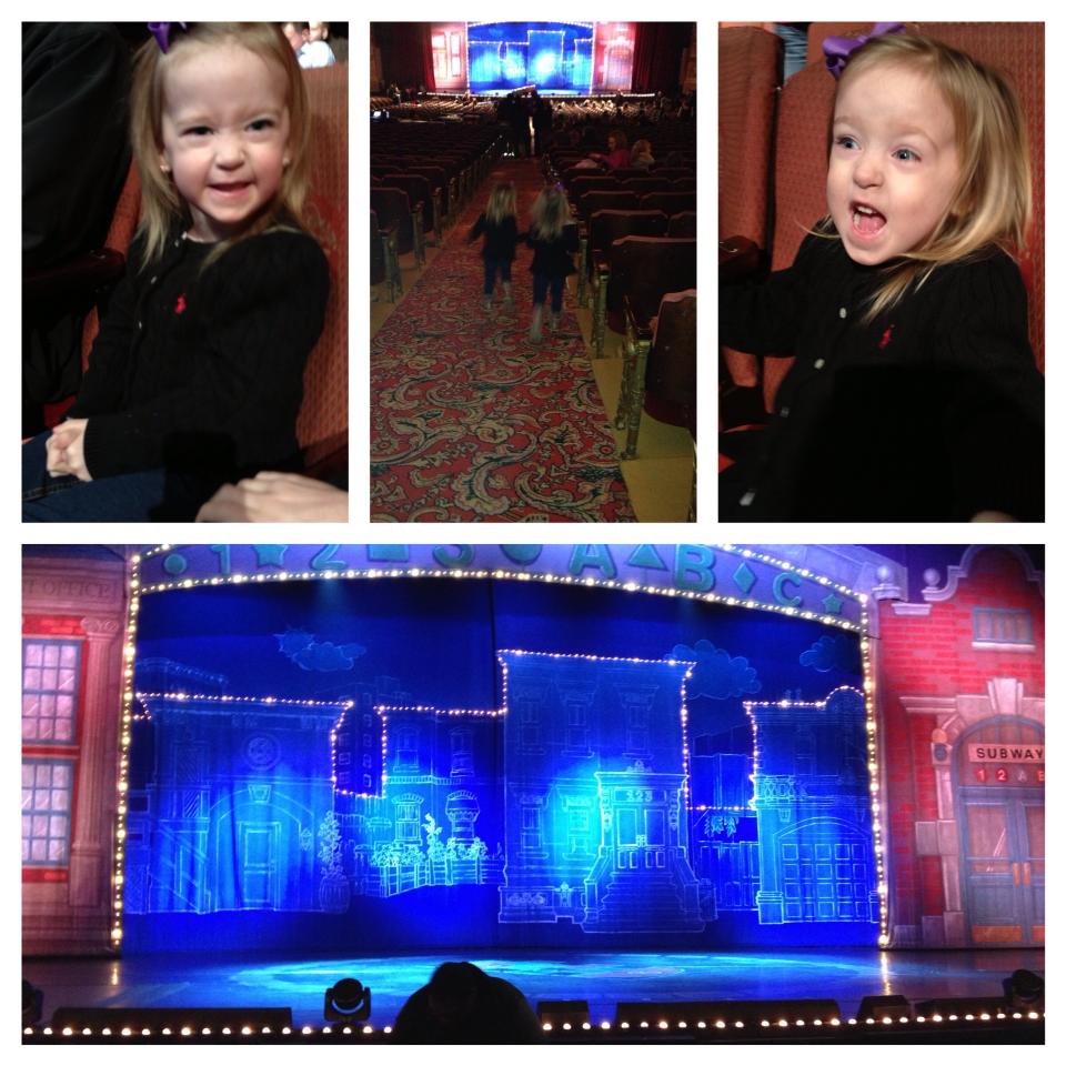 We pulled over at the very next exit, ran into a Big Boy restaurant, ushered you into the bathroom… and after looking around at the decor, you decided you could hold it after all! Really, Molly?! So, back on the road we went. We pulled in the parking garage and excitedly awoke the two sleeping beauties who had dozed off in the car. As soon as we walked into the Fox Theatre, the sleepiness had worn off! Daddy, of course, had purchased the best tickets he could.. 6th row, center… and you were excited to be there! Daddy bought you lots of goodies, light up things, candy; Mommy took you on 4 trips to the bathroom and spent the whole time watching/capturing your reaction. I don’t think I saw more than 30 seconds of the show! Instead, I had more fun watching you girls dance and seeing the expressions on your face! It was the first experience you had ever had with a live show. We haven’t even tried the movie theater yet. Two hours later, on our way home, we all had a blast and it was worth every penny! Can’t wait to go back next year! I’m so glad you girls had fun!