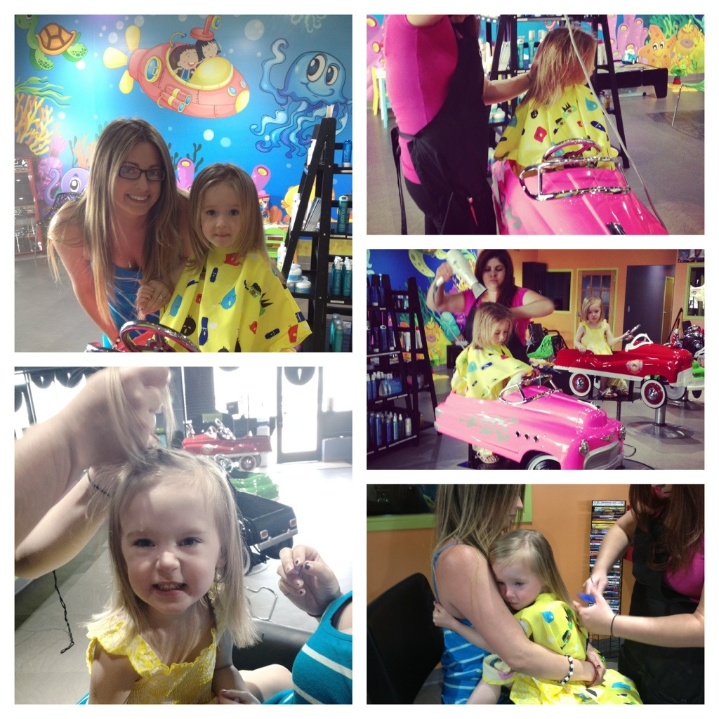 Ah, how did I forget to post these photos?! Last week you guys got a haircut! Like a real, big girl haircut!! Technically, it’s not your first- you had a tiny, tiny trim a year ago. But this was the first real haircut. I was SO nervous. I love long hair and I wasn’t sure if I wanted to get yours cut! But, Gaga kept nudging me to do it, an Daddy agreed… So we did it.