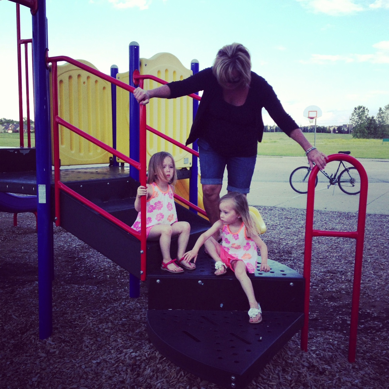 After the party, we went home to pick up the house. We ended up ordering pizza for dinner and eating outside on our new patio. I love being able to eat outside now! When we finished, Daddy was still cutting the grass, so I offered to take you guys to the park until bedtime. Of course, you JUMPED at the opportunity!! We went to local elementary school and had a blast playing make believe bus drivers, doctors, dinosaurs and sharks on the playground!
